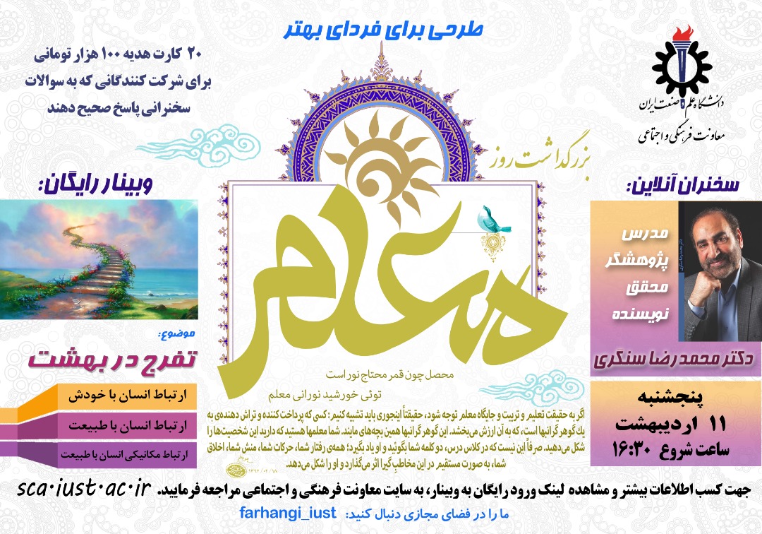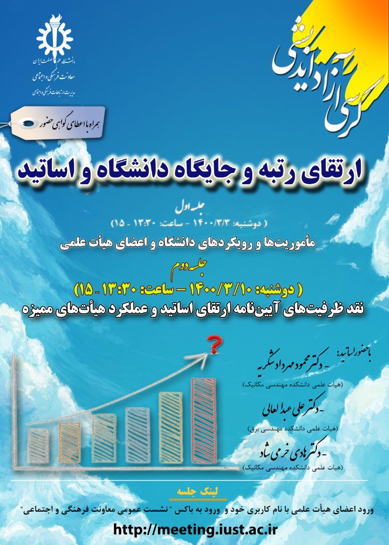کلیه حقوق مادی و معنوی این سایت متعلق به مدیریت ارتباطات فرهنگی و اجتماعی دانشگاه علم و صنعت ایران می باشد نقل هرگونه مطلب با ذکر منبع بلامانع می باشد